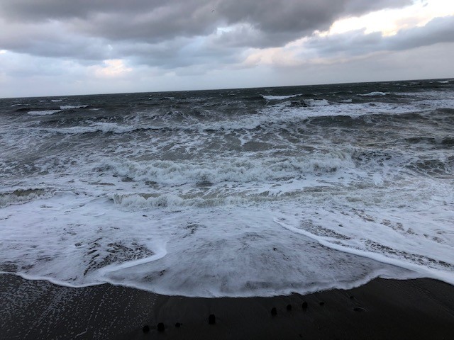 Today, Boreas is here importing cooler air from Greenland, aggressively bending the trees, sending early autumnal leaves high into the air and anointing the beach walker with smacks of sea spray. The beach is busy, and noisy, waves are crashing and growling as it claws at pebbles, tossing them high in a clatter and rumble. The energy buzzes through the air and fizzles through the finger tips.