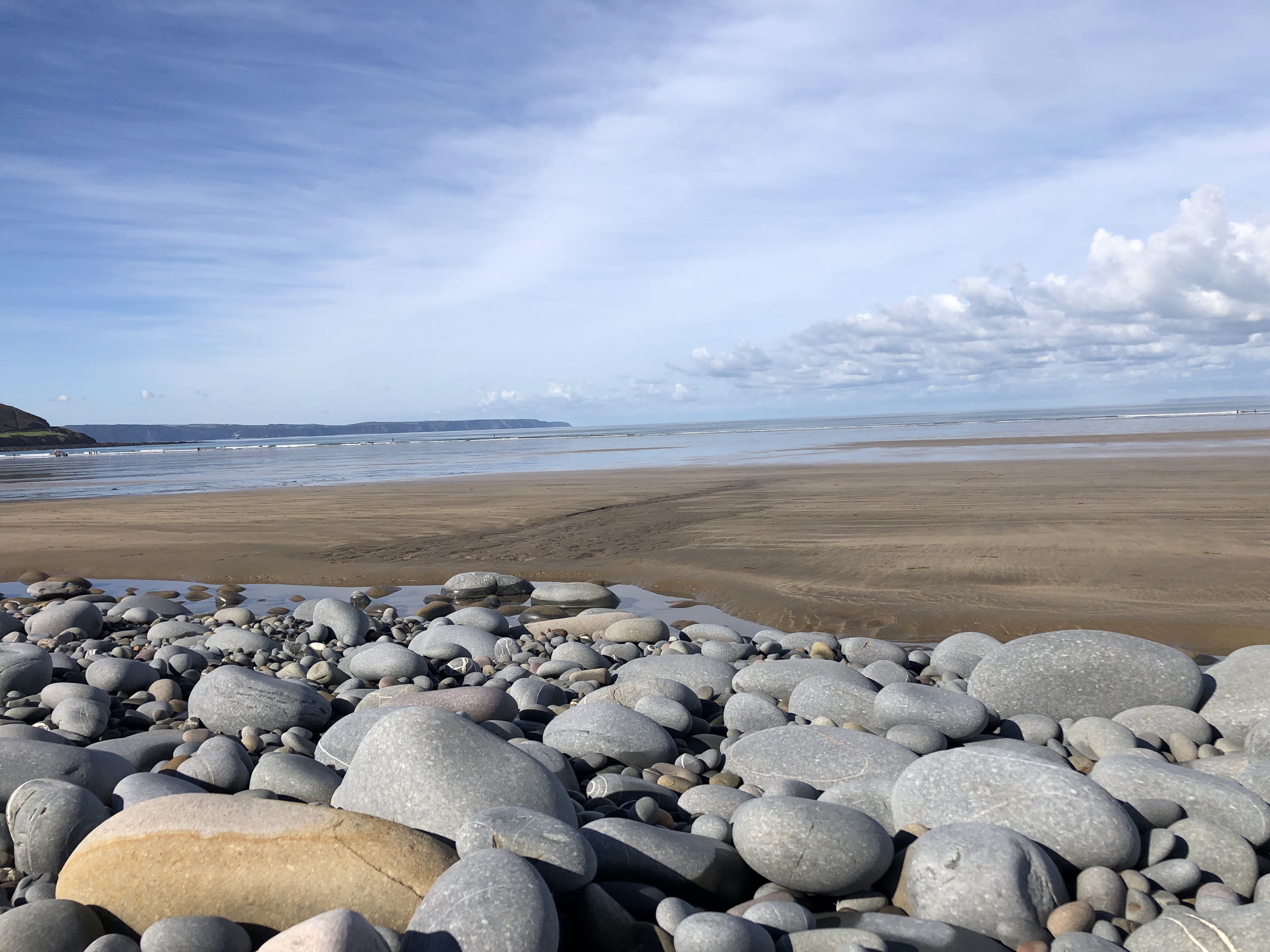 According to the ‘Area of Outstanding Natural Beauty’ website (aonb@devon.gov.uk) these stones, rounded by tumbling against each other under the force of the waves, are 300 million years old! An age that is hard to make sense of, but a wonder to reflect upon. To hold a smooth cobble in the palm of your hand is to touch back in time – who else touched this rock? How many times has it felt the touch of the endless (300 million years is endless to us) tides?