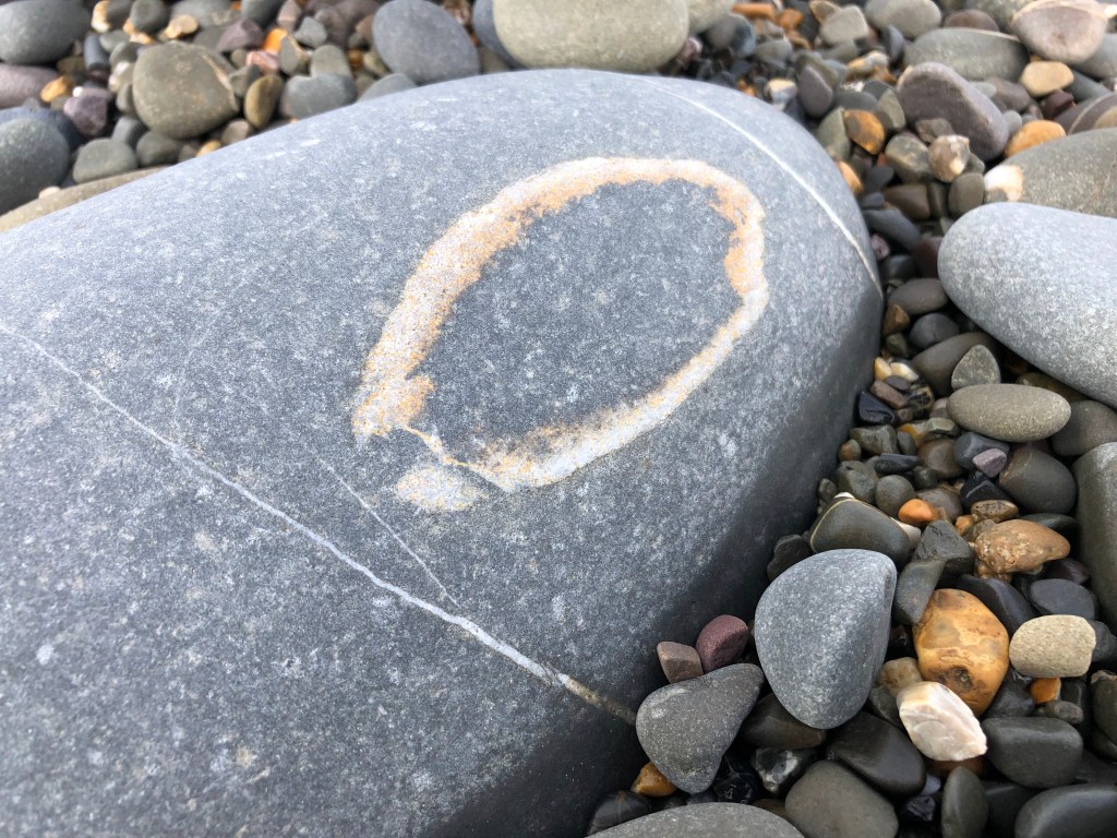 Just to marvel a little more on this assortment of time capsules at our feet: They are grey sandstones, which are sedimentary rocks, which means that before they were the rock we see today, they were sand or sediment. As these fragments they were laid down in layers, compressed under pressure creating the sandstone. Sand and sediment are tiny broken pieces of rock swept down to the sea by rivers, or from cliffs by the waves. So, before they were sand they were other rocks – maybe igneous or metamorphic rocks. They were eroded and broken into tiny pieces to travel from other parts of the globe along rivers, and in sea currents to arrive here. Recycling and upcycling in perfection.