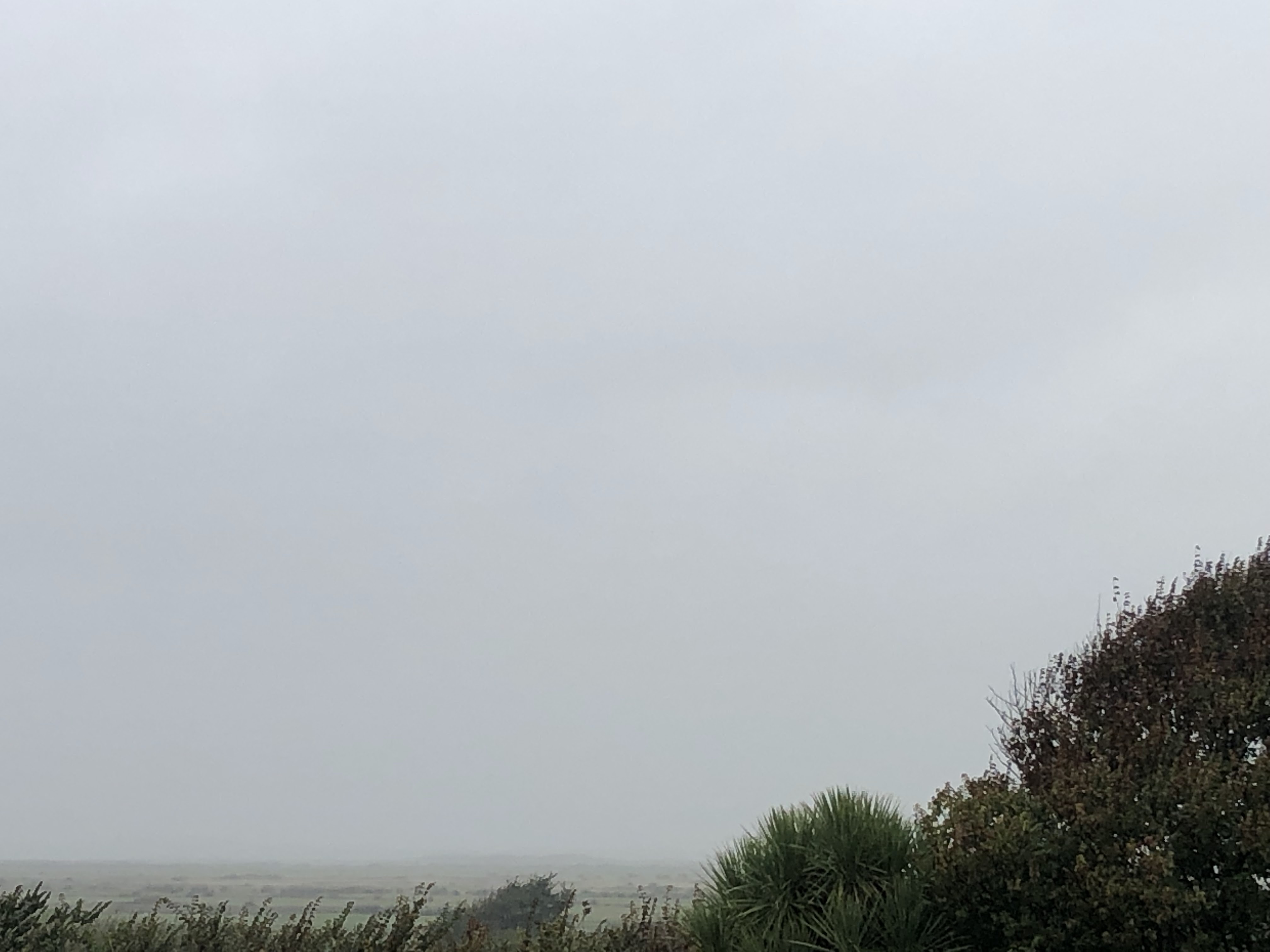 There are lots of different kinds of rainy days. There are the ones that are accompanied with flashes of sun between rolling black clouds. On the beach, you can usually see the downpours coming: A hazy veil swishing towards you. You can see when you will get wet, and that afterwards the sky will clear and the rain will stop. Then there are what I call ‘flat white’ rainy days. These are just as if the sky has dropped down to just above your head and we are stooping under a white -grey blanket of drizzle and steady rain – like today.