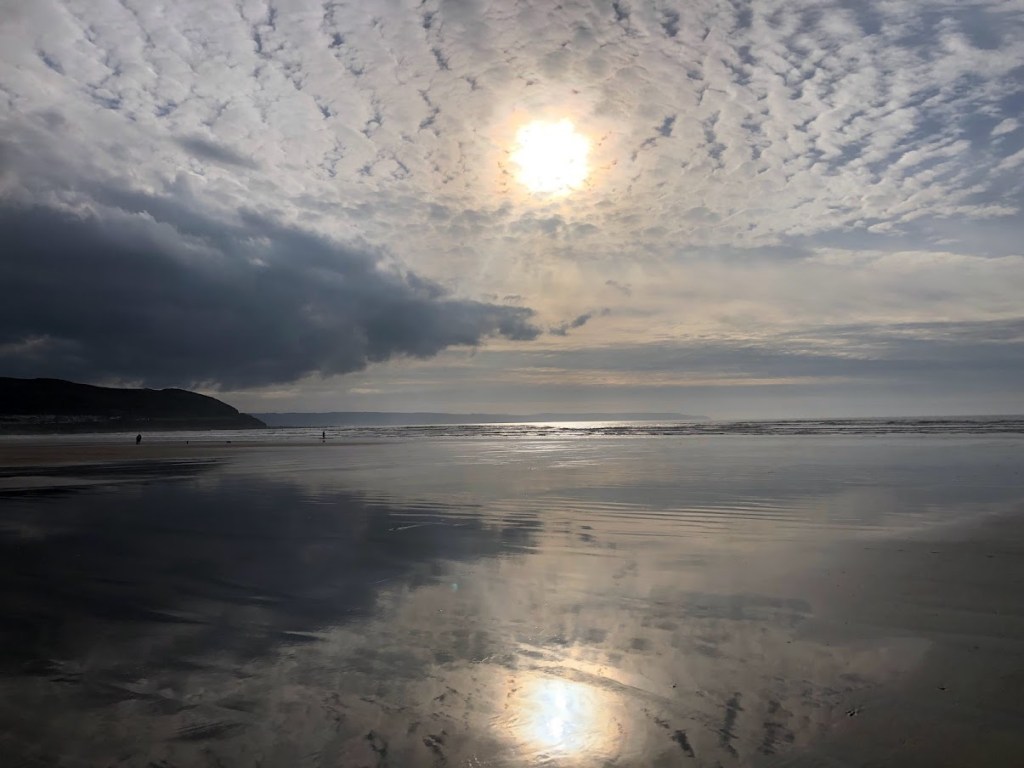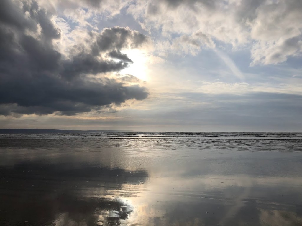 Listen to the busy sound of the sea today as it rushes in, fizzing slightly as it percolates the holes in the sand. Hear the trickling and splashing sounds as it encompasses stones, and overflows rockpools, filing every space back up with water; flattening ripples, smoothing out indents created by footprints, holes from spades and castles by children. In the background there is the constant swoosh of each waves, and then the whispers as the waves reach forwards to level, and quench, flood and smooth.